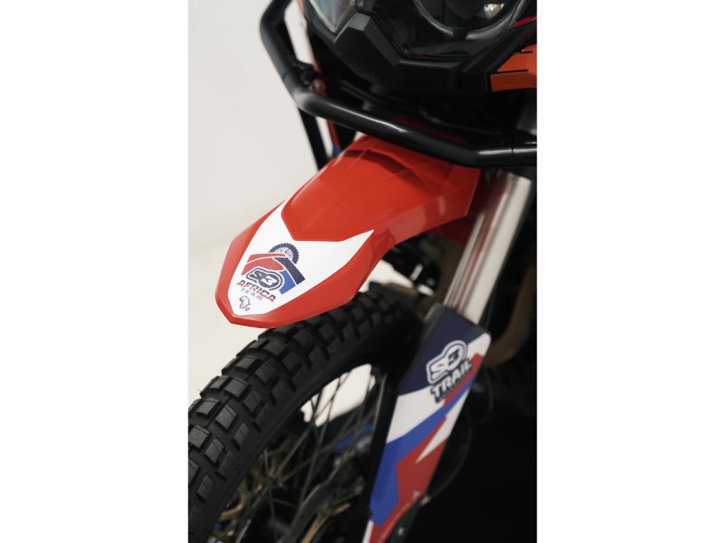 Posuňte svoju Hondu Africa Twin CRF 1100 na vyššiu úroveň s našou terénnou súpravou vysokého predného blatníka. Táto súprava poskytuje autentický **pretekársky vzhľad** a zvyšuje výkon a funkčnosť v náročných terénoch vďaka optimalizovanému dizajnu, ktorý zvyšuje vôľu pre predné koleso, vďaka čomu je ideálna na prekonávanie prekážok a vychutnávanie si dobrodružstiev v teréne.